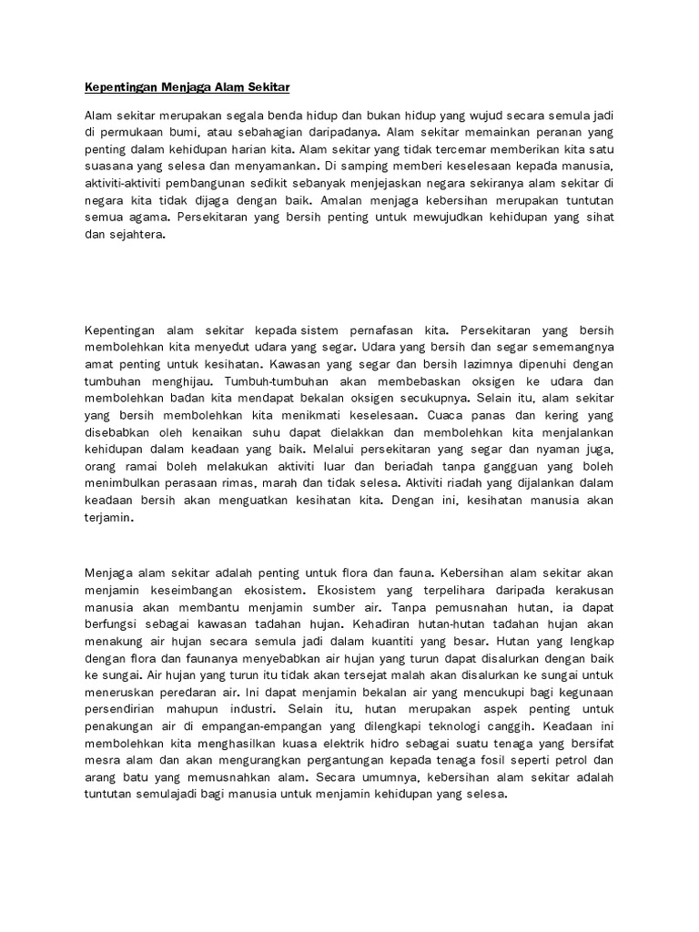 Karangan Kepentingan Menjaga Alam Sekitar Pdf